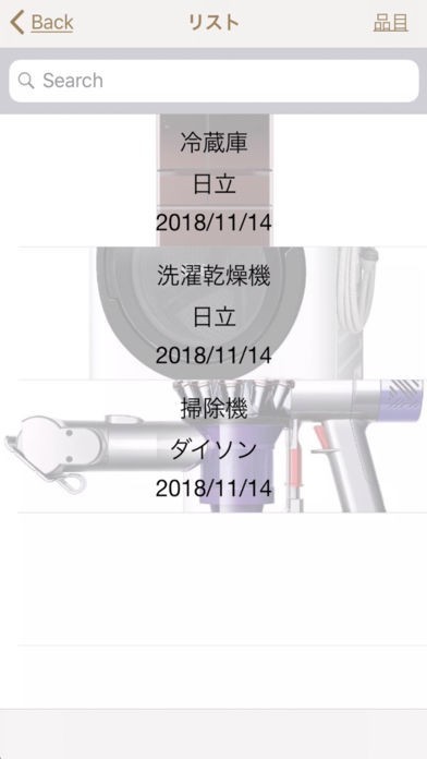 登録してある商品の名前や品番、メーカーなどの情報を使って登録してある保証書リストの中から該当の保証書を素早く見つけることができます。必要であれば、保証書情報を電子メールで送信することができます。