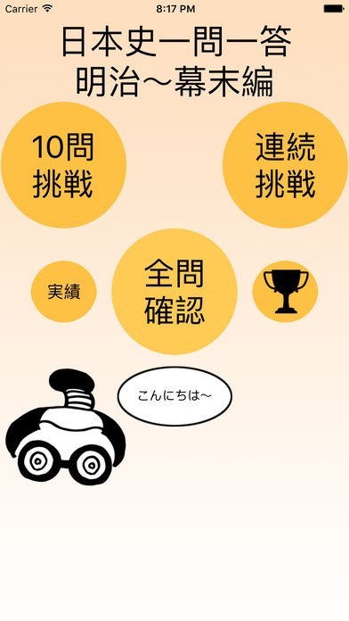 幕末〜明治時代の日本史に特化した、一問一答形式で出題するエデュケーションアプリ、高校生レベルの独自視点での出題が魅力