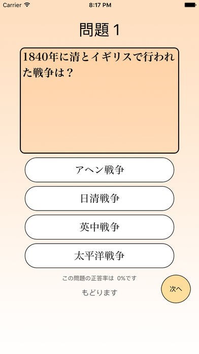 "日本史一問一答 幕末〜明治編"は、その名の通り、幕末から明治時代にかけての日本史に特化した、一問一答形式で出題するエデュケーションアプリとなっています。1プレイにつき選択肢を選ぶ問題が、10問出題されます。高校レベルの学習内容の問題ですが、メジャーな一問一答とは違った角度から、独自の視点での問題が多く収録されているのが特徴的です。答えの記載はなく、正答率のみを表します。その為、複数回プレイして答えを導くか、間違えた問題を学習し直すなど、答えを求めて追求心に駆られる仕様になっています。楽しく手軽に空いた時間で日本史を学べるのが魅力的なアプリです。