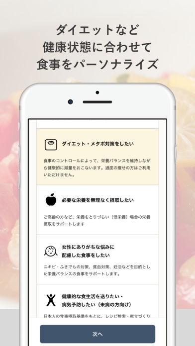 ダイエットなどの健康状態に合わせて献立の閲覧が可能!