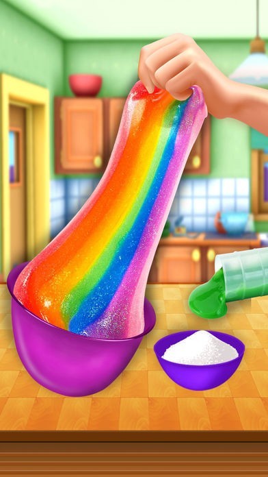 じぶんのDIYスライムは、粉からスライム作りを楽しめます。カラフルな色があり、好みの色を選べます。タップとスワイプで簡単に操作できます。順番に材料を入れて、混ぜ合わせる作業を行います。