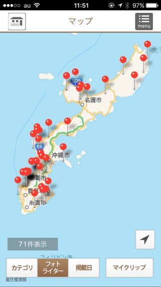 記事をその情報に該当する住所に沿って沖縄の地図上にマッピングし、便利に利用できます。