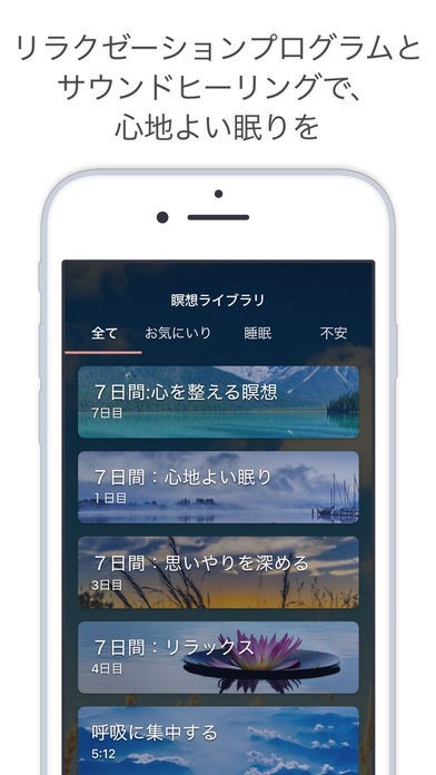 リラクゼーションとサウンドヒーリングを使ったマインドフルネス瞑想を手軽に体験できるアプリです。聴いているだけで心が洗われ、いつの間にか心身共に健康になることができます。