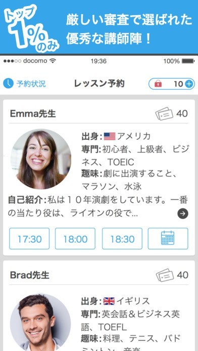 ・授業開始30分前まで予約できるから、あなたの忙しいスケジュールに合わせられる。