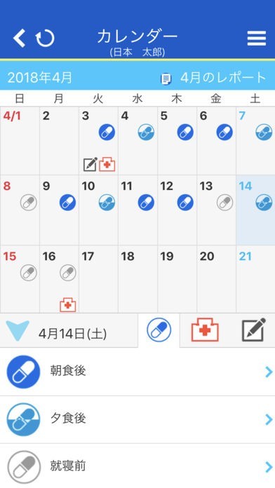 おくすり手帳の電子版です。カレンダーが付いているので、処方日や利用日が分かります。