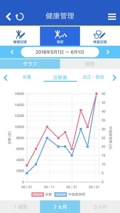 お薬手帳の機能に加えて体重や血圧などを記録することができます。グラフで振り返ることができるので、コレ良いですよ。