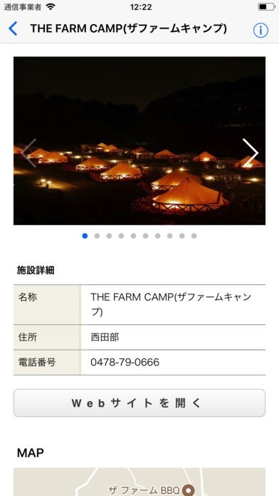 地図上に表示されているキャンプ場を選択すればそのまま該当するホームページに移動することができます。より詳細な情報を入手したり、予約可能かどうかを調べられるため便利な機能です。