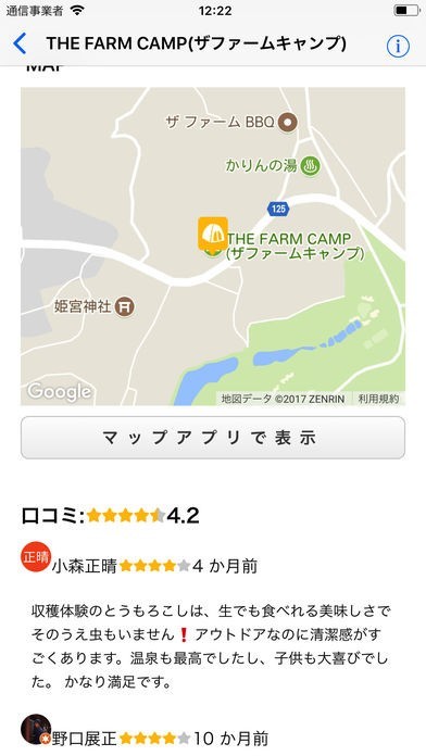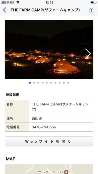 App Storeより引用GoogleのAPIを使用した全国のキャンプ場、バーベキュー場を検索するアプリです。全国地図から、各都道府県のキャンプ場をマップ表示して、各キャンプ場の詳細ページからキャンプ場の詳しい情報、キャンプ場の口コミなどを確認することができます。また、お気に入りのキャンプ場を保存して表示することができます。