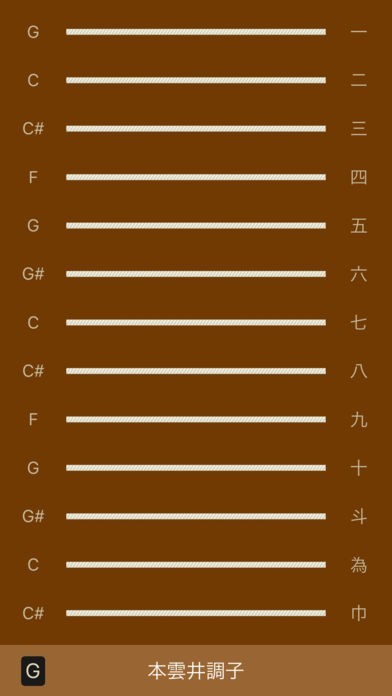 弦名と音名が同じ画面上に並んで表記されているので、誰でも簡単に音の関係性を理解することができます。なおこれは琴の演奏アプリではなく、チューニングアプリです。琴の演奏はできませんのでご注意下さい。