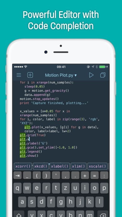 iPhoneやiPad上ですべての作業が可能な、スクリプト言語のPythonでiOSアプリを作れる開発環境です。文法が簡単で習得が容易なことで定評があるPythonが使えるので、初心者でも楽しくプログラミングができます。またアプリの部品であるライブラリも非常に充実しており、本格的な開発にもしっかり対応します。コーディング作業を快適にする高機能なコードエディタやスクリプト言語では定番のインタラクティブコンソールも内蔵されているので、ベテランの開発者の要求にも十分応えることができます。