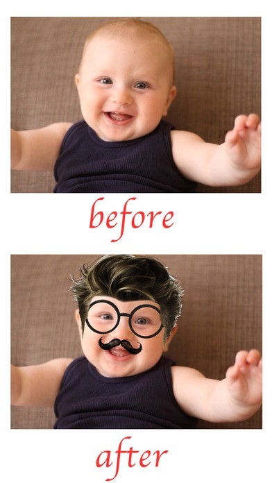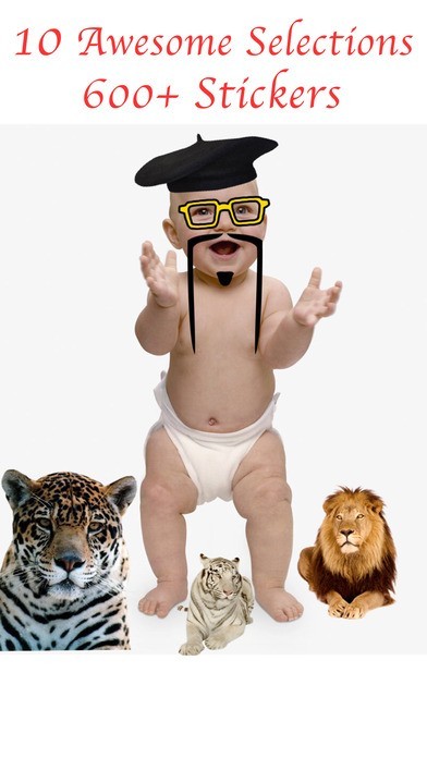 多彩なステッカーで写真が変わる!ヒゲやメガネなど楽しく使えるステッカーが満載