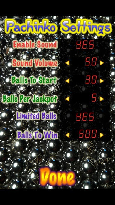 「Pachinko」は初心者には少し難しい難易度に設定されています。難しいと思ったら、「Balls to Start」や「Ball Per Award」を高めの数値に設定することで、難易度を下げることが可能です。