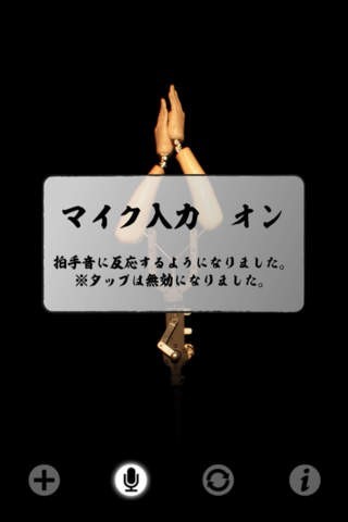 携帯音手は、アプリの音手が一緒に拍手してくれます。拍手がもっと欲しいときに、拍手する仲間を増やせます。操作方法は、2種類あり画面をタップで音手を鳴らすと反応して鳴る方法と、マイクをオンにして拍手すると鳴る方法があります。