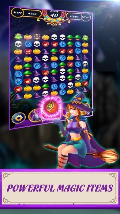 魔法のパズルを解き違うレベルのステージを解放しましょう。ドクロやかぼちゃなどのアイテムを使うことで、パズルを解きやすくなります。同じアイテムを同時にマッチさせ、魔法の火など強力なアイテムで爆発させましょう。