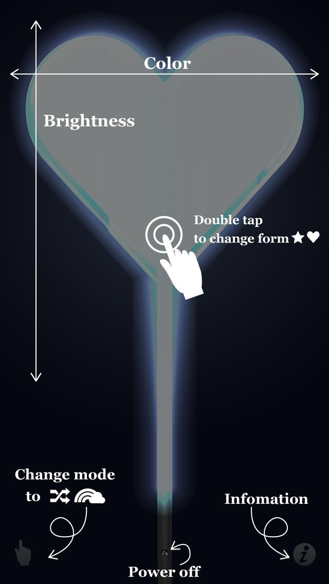 コンサートやLIVEで使用するサイリウムやペンライトがスマホで再現できるアプリです。普通サイリウムは使い捨てで一度使ってしまうともう使えませんが、アプリなら何度も使用することができ、持ち運びもスマホを取り出しアプリを起動させるだけなのでステージから目を離す時間が短縮できて見たい場面を見逃すことが少なくなります。起動させたアプリは横方向にスワイプすることで発光する光の色を変更し縦方向のスワイプで明るさを調節することができるので一人だけ違う色にしたり周りの色に合わせることもできます。更にダブルタップで光る形をハートにしたり星型に変更できるのでコンサートだけでなくカラオケや人が多い場所での目印など色々と楽しめるアプリになっています。