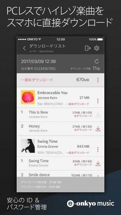 ハイレゾ楽曲をパスワードで管理可能