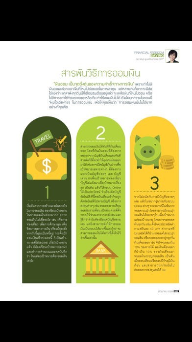 โดย แบ่งเนื้อหาออกเป็น 4 เรื่องหลักๆ นั่นคือ การวางแผนการเงินด้านการลงทุน (Investing)การวางแผนการเงินด้านการออม (Saving)การวางแผนการเงินด้านรายได้ (Earning) การวางแผนการเงินด้านการใช้จ่าย (Spending)