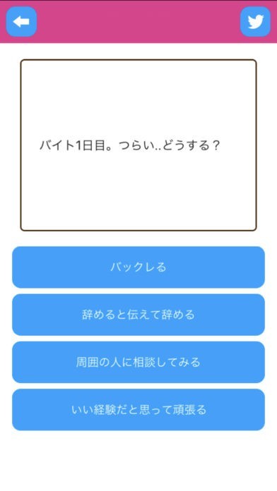 質問に4択で答えるだけのシンプル操作なので手軽に遊べます。診断結果も当たっていました。もっと大人になります。。。