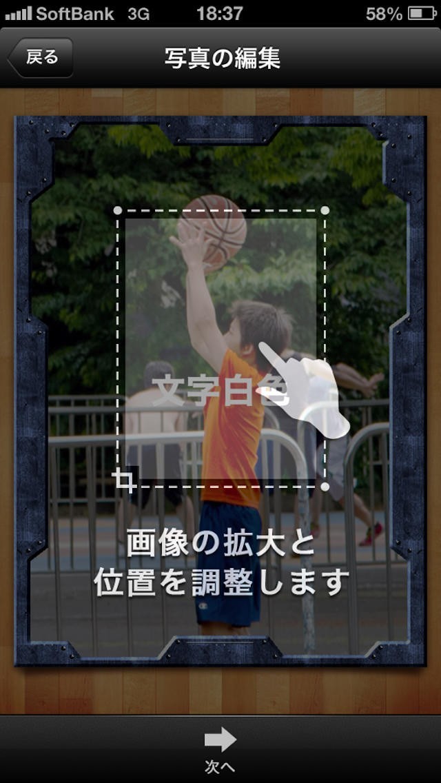 自分や友だちの写真を加工してプロバスケカード風の画像を作成できる