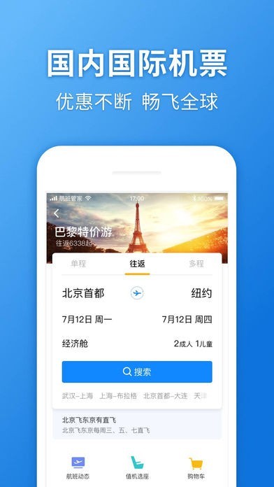 3、直销机票在线预订:票源来自各大航空公司,低价有保障。可随时随地退票、改签。
