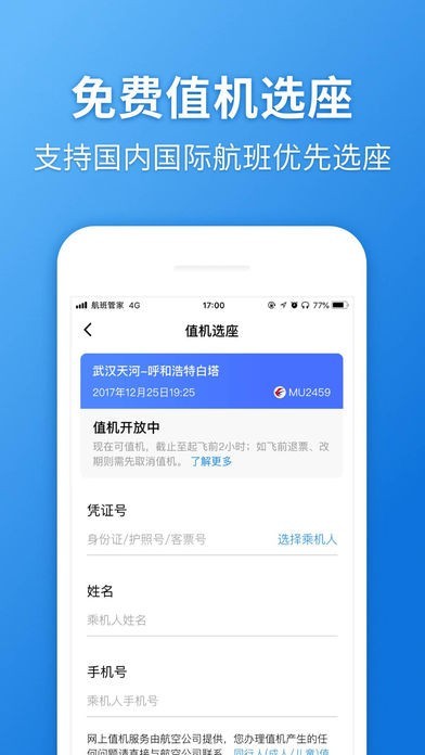 2、手机在线值机选座:通过手机值机预先占个心仪的座位 ,部分航空公司在航班开放值机前还可预订座位。