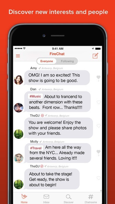 「FireChat」はインターネットに接続することが出来ない環境でも利用することができるチャットアプリになります。このアプリはWi-Fiに接続して使用することも可能ですが、Bluetooth通信を利用した通信も可能になっているので、アプリのユーザー同士で約70メートル以内の距離であればインターネットに接続できない状態でもチャットをすることができます。メッセージにハッシュタグをつけることで自動的にチャットルームを作成可能になっています。