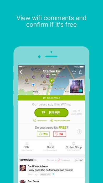 • Foursquare and WifiMapper comments - get more information about the hotspot venue