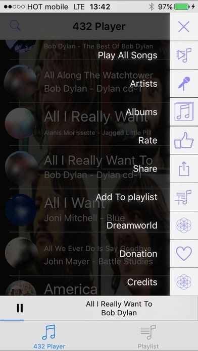 432 Playerはこのプレイヤーで音楽を再生しないと432hzへの周波数変換ができないことから、プレイリストやアルバム再生、お気に入りなど様々な選曲機能が搭載されています。