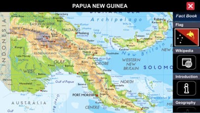 The World HD is unique in the app store because it includes both a complete set of country maps AND the largest world fact book. These enable it to answer questions which Atlases and fact books cannot: Atlases show you where countries are located, but have very little information about them; fact books tell you about each country, but their maps leave you guessing about where places are located.