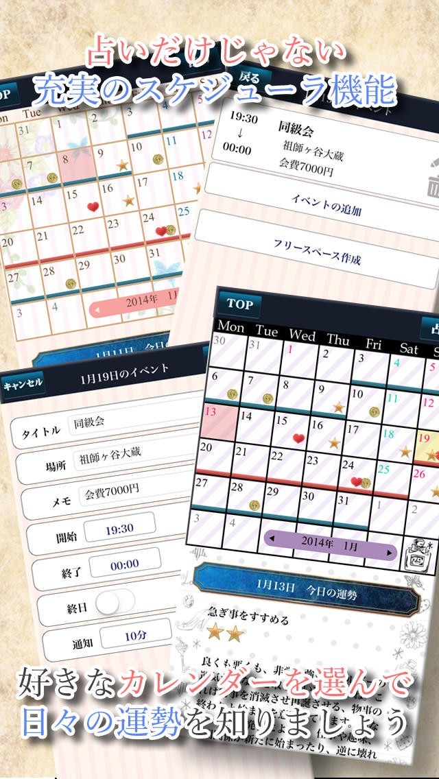 ・占いを見ながら、カレンダー機能でスケジュールを管理できます。