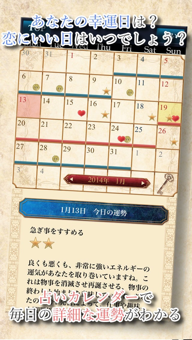 ・幸運日や、危険日、日々の相性などもわかります!
