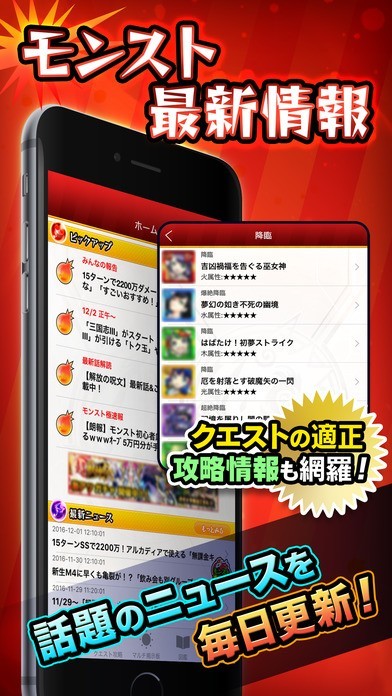 当アプリは、モンスターストライクの攻略・イベント情報、マルチプレイ相手を探すマルチ募集掲示板、便利なモンスター図鑑やモンスター比較ツールをお届けするモンストファン必見の攻略アプリです!