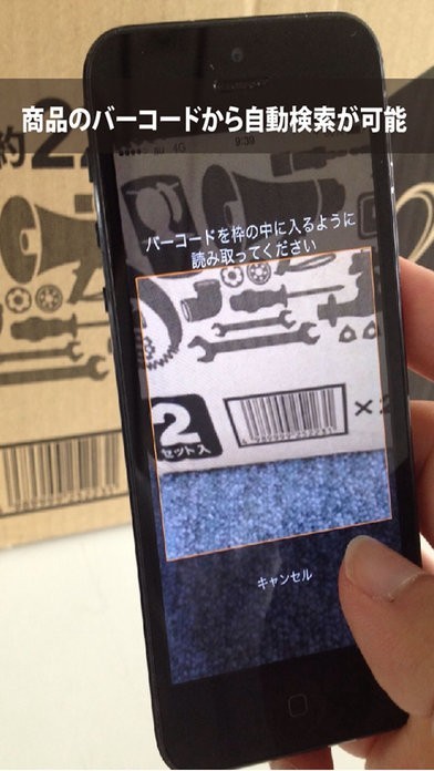 また、新機能「バーコード検索機能」を搭載。これにより、バーコードをスマホで読み取るだけで、商品の検索が可能になりました。在庫の発注管理や、リピート品の発注の際に大活躍するツールです。