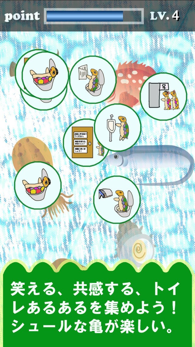 子供の落書き的なシュールな亀のイラストで描かれた、誰もが共感するトイレあるあるを集めよう!