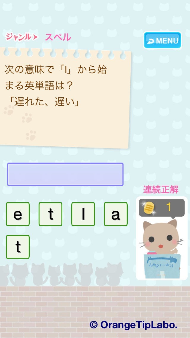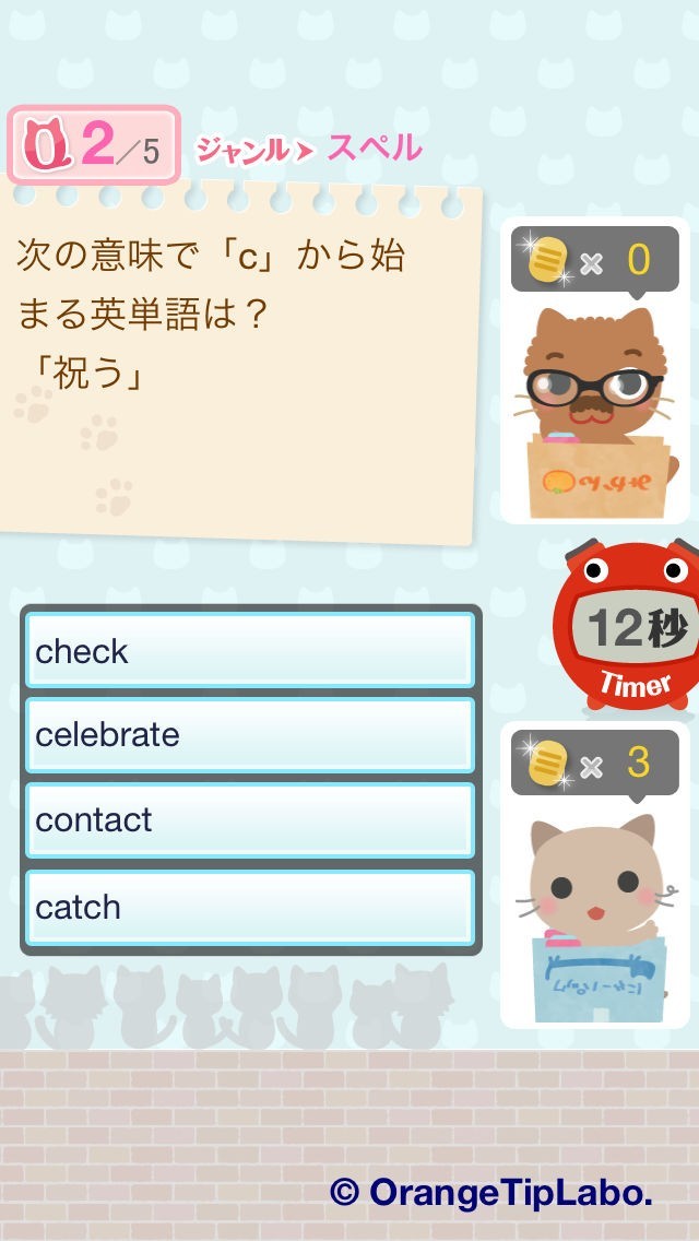 App Storeより引用ニャンコ界のクイズ番組で活躍するニャンコを相手に1対1の早押しクイズ対戦。