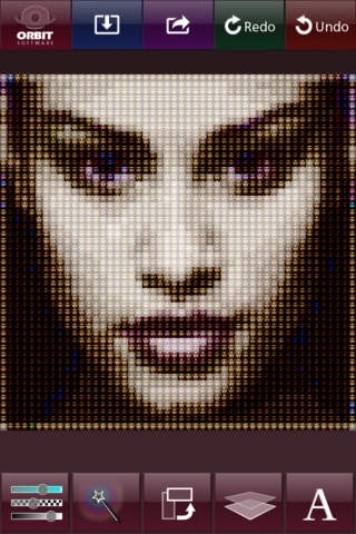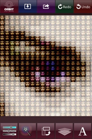 画像を美しいモザイク風のアート作品のしてくれるアプリです。このアプリの特徴としては、機能があまり多くなくて、シンプルであるということがあげられます。アプリの下のほうにスライダー調整、テキストなどの5つのボタンが用意されていて、アプリの上のほうにもセーブ、ロード、再読み込み、元に戻すという4つの機能のボタンがついています。このように基本的には合計で9つの機能のみで作品を作ることが出来るので、とても解りやすく迷うことはありません。