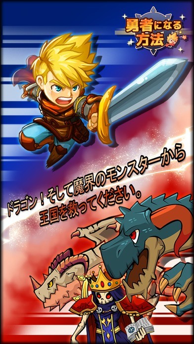 勇者になる方法は、モンスターを倒しながら王国を救う旅に出る、勇者を題材にした王道RPG風ゲームアプリです。ゲームのボリュームはコンパクトにまとまっており、長時間のプレイにだれることなく、サクッとクリアを果たすことができます。武器を装備し仲間を集め、タイミングバトルに勝利してクエストをこなしと、勇者になる方法を実践して、ベストのエンディングにたどり着けるように頑張ってみましょう。また周回プレイも楽しめるように、勇者になる方法にはベスト以外にも様々なエンディングが用意されています。プレイのスタイル次第で、変わる結末をお楽しみください。