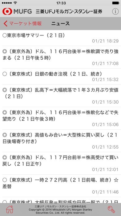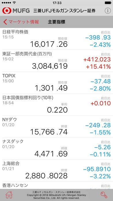 株取引などを行うにあたって、市場の情報とは最も重要となってきます。そういった場合にスマートフォンで片手で楽にマーケット情報やニュースを確認出来ると便利ですが、それを叶えてくれるのが三菱UFJモルガン・スタンレー証券株式会社が提供しているアプリの「sc.mufg」となります。このアプリ一つでニュースなどの情報や、自分の探したい国内取引所の株価を見つける事ができだり、日経平均株価などをテクニカル分析を追加した上でチャート表示させられるなどの機能も充実しております。株価についての情報をすぐ知りたい時はsc.mufgを活用してみると良いでしょう。