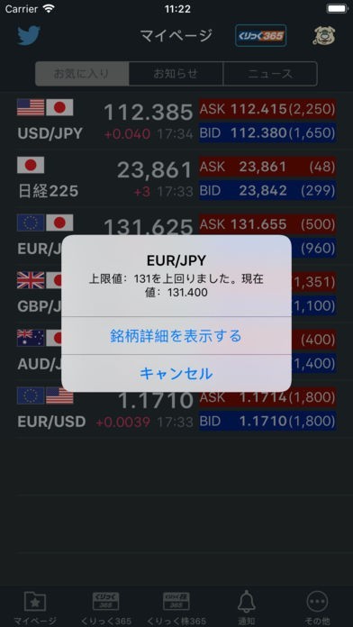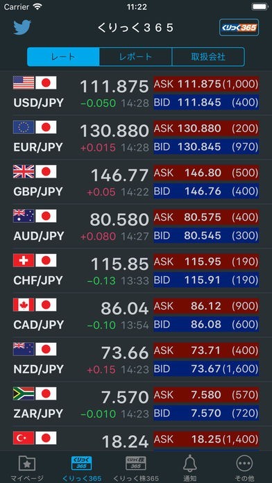 くりっく365でおなじみの東京金融取引所による公式アプリなので、配信されている相場情報などの各種情報には信頼性があり、安心してアプリを利用して取引に活用することができます。