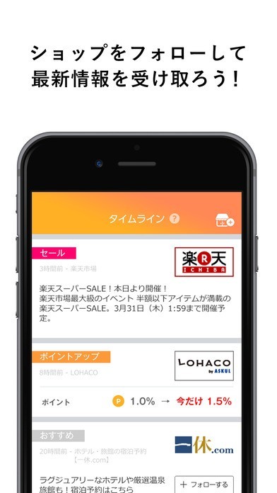 ショップのセール情報やクーポン、獲得したオリコポイント情報などをプッシュ通知でいち早く手に入れることができます。お気に入りのショップでの買い物をよりお得に楽しめるようになります。