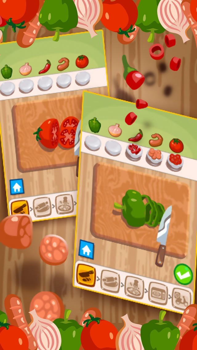 「ピザピカソ」は材料を切ったり、焼いたりといった工程をプレイすることができるクッキングアクションゲームアプリです。このゲームは届けたいピザを作るためにまず使いたい材料を選んで、ちょうどよい大きさに切ったら、ピザの生地を伸ばして、きれいにトッピングをのせたら、タイミングよく焼き上げて配達するゲームとなっています。タップやスライド操作など簡単な動きで工程を進めることができるようになっているほか、トマトやピーマン、ベーコンなど好きな材料を自由に使い分けてオリジナルピザを完成させてフェイスブックで友達や家族とシェアしたりしながら楽しむことが出来ます。