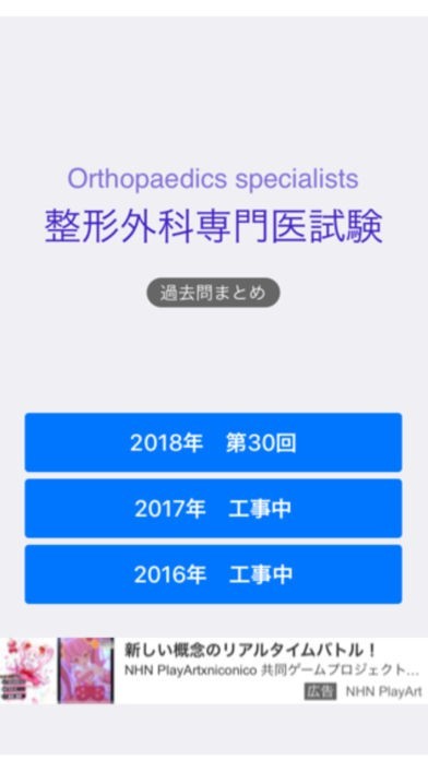 App Storeより引用整形外科専門医試験の過去問集です。ランダム出題機能付き。各年120問収録。2018年から順次追加予定です。