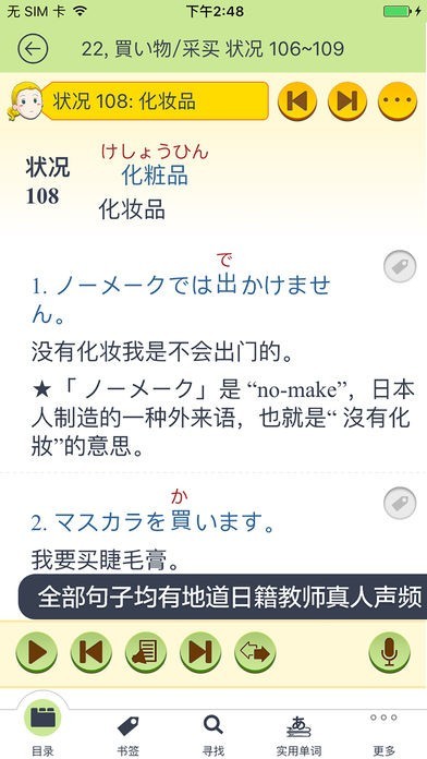 全部句子均有道地日籍教师真人发音,发音速度可调,练习容易。