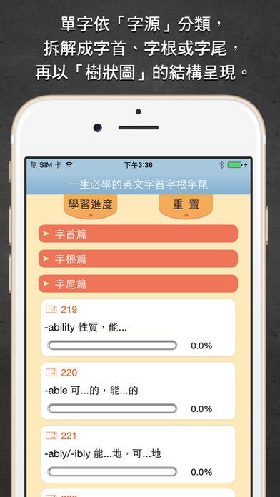 「一生必學的英文字首字根字尾,繁體中文版」関連アプリ