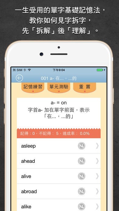 專為想背單字卻不得其門而入的學習者設計!不用抱著書死記、硬背,用全世界都在用的「單字拆解記憶法」,輕鬆將單字記起來!本 app 根據名師蔣志榆編著之「一生必學的英文字首字根字尾」一書製作而成,善用本書內容,讓您學習單字更有效率。