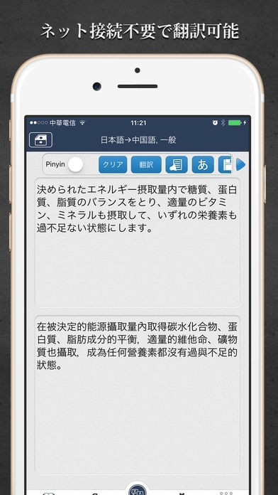 日本人にとって漢字はなじみ深いため中国語も何となく意味を理解できることがあります。しかし、より正確な意味をとらえる必要がある場合は本アプリを使って翻訳してみましょう。
