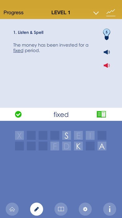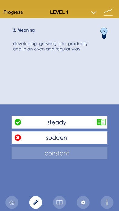 • Track your progress as you go and check how many words you have learned and how many are left.