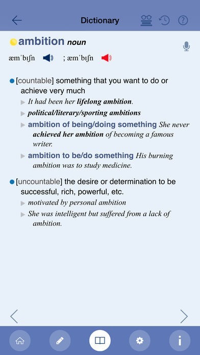 • Clear, simple definitions with example sentences (taken from the Oxford Advanced Learner’s Dictionary)