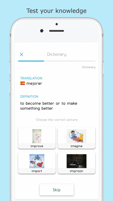 - Expand your vocabulary with daily practice: improve pronunciation by listening to audio clips; learn the definition using pictures and description; practise using each word correctly in a sentence