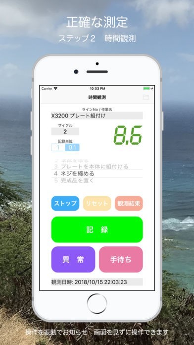 ・測定中のボタン操作をバイブレーションでお知らせ。画面を見なくても確実な操作を実現(iPhone)